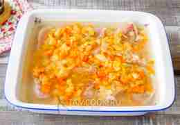 Сверху выложите обжаренные овощи.