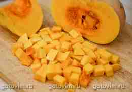 Кусочек тыквы нужного веса, очистить от кожуры и семян, порезать кубиками 1х1 см или чуть крупнее. Очищенные лук и морковь мелко порубить.