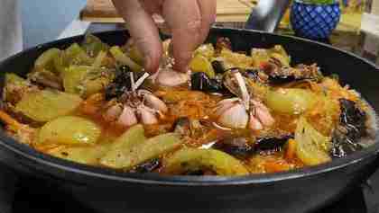 Кладем чеснок прямо в шелухе. Он в ней пропарится и станет очень нежным. И еще чеснок таким образом будет отдавать продуктам свой аромат мягко и постепенно.