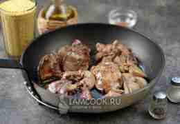 растительного масла, выложите в него куски печени и быстро обжарьте на сильном огне до румяной корочки. Переложите печень на теплую тарелку.