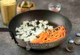 В это же масло положите нарезанный мелким кубиком репчатый лук и тонко нашинкованную морковь. Обжарьте пару минут до мягкости на умеренном огне.