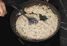 Разделение нарезки обеспечит равномерное распределение вкусов в готовом ризотто.