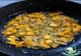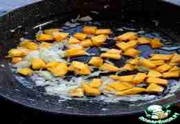 Нарезать мелко лук и некрупными кубиками тыкву.
