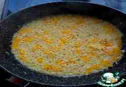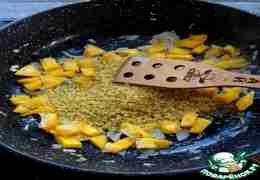 Пожарить всё вместе примерно минуту. Булгур должен немного поджариться.