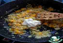 В конце приготовления добавить в сковороду сыр, перемешать, прогреть пару секунд и можно убирать с огня.
