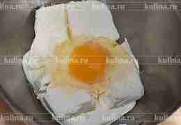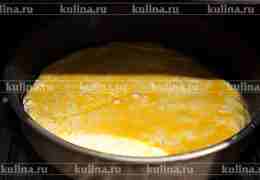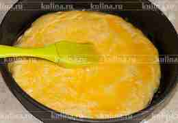 Перенести сырник в огнеупорное блюдо, смазать яичным желтком.