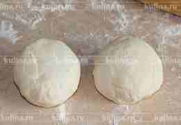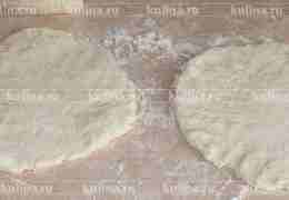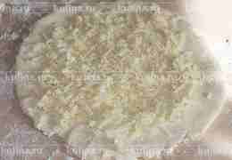 На один круг выкладываем натертый сыр, оставляя края свободными.