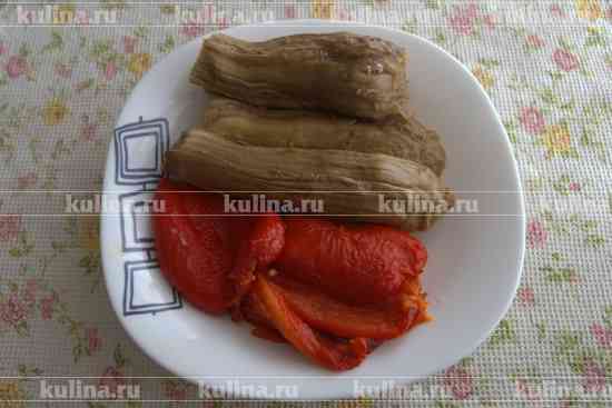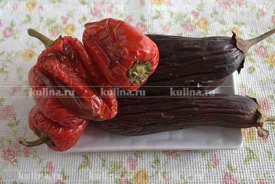 Выкладываем горячие овощи в пакет, закрываем его и ждем 20-25 минут. Очищаем баклажаны и паприку от кожицы, удаляем семена из перца.