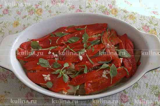 На следующем этапе выкладываем слой сладкой паприки. Также заливаем ее соусом.