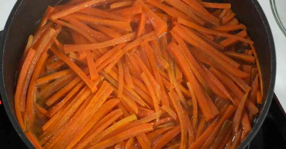 Кладем сверху морковь. Не перемешиваем. Томим 15 минут.