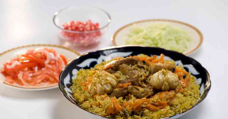 Выкладываем в тарелку рис, морковь и мясо. Сверху кладем чеснок. Подаем с салатами. Приятного аппетита!