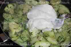 растительное масло, выложить кабачки и обжарить до прозрачности.