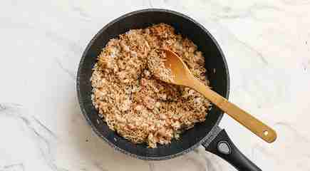 Всыпьте рис в небольшой ковшик, добавьте 1 ч. л. оливкового масла и 1 ч. л. лимонного сока и обжарьте на среднем огне, 2 мин.