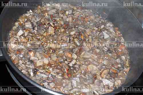 Заранее подготовленные грибы мелко нарезать и обжаривать в растительном масле до готовности.