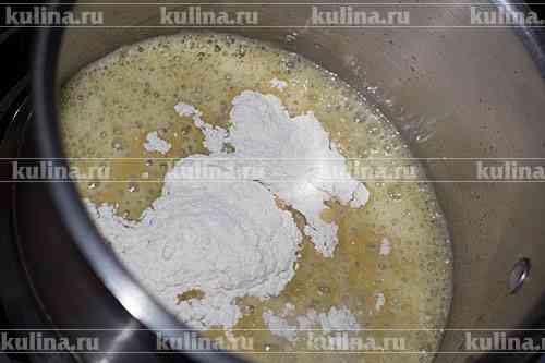 Всыпать муку и слегка обжарить.