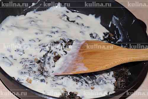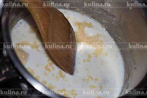 Постоянно помешивая влить сливки, довести до однородной массы.