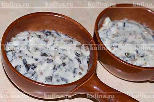 В форму для запекания выложить грибную смесь.