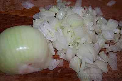 Лук мелко нарезать.