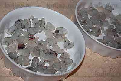 Выложить креветки.