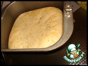 мелко нарезанные чеснок и базилик, потом засыпала муку и дрожжи. Поставила программу 2 (вес хлеба до 1 кг, общее время 2 ч.50 мин.)