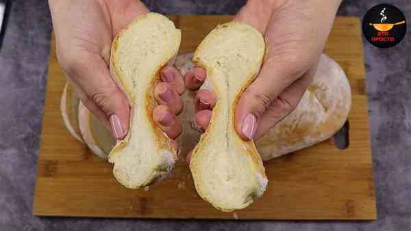 Достаём его из духовки. У горячего батона корочка твёрдая, не переживайте, после полного остывания он будет очень-очень мягким.