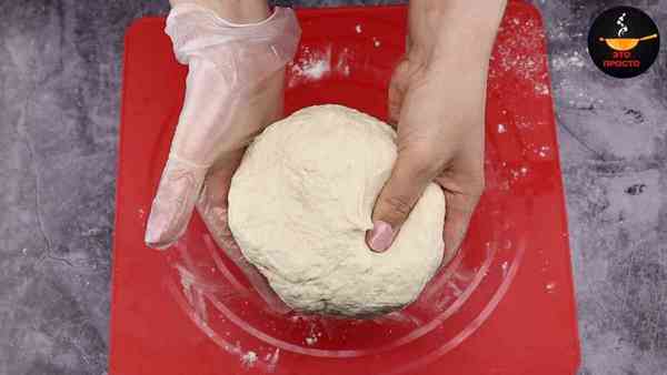 Замешиваем тесто руками. Оно довольно быстро собирается в единый комок.
