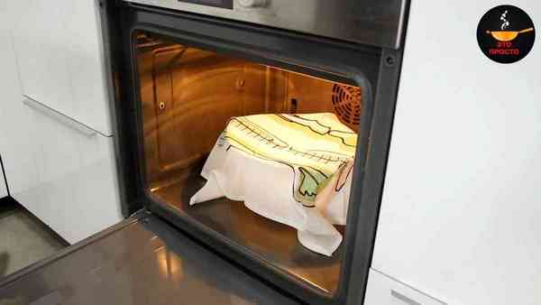 полотенцем и убираем в тёплое место на полчаса. Я ставлю в включённую на 40° C электрическую духовку, дверцу закрываю.