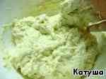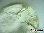 Перемешать пол минуты, не добиваясь однородности, а просто, чтобы вся мука смешалась с водой.