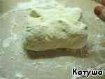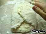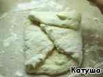 Теперь сложим тесто как конверт, чуть вытягивая каждый край.