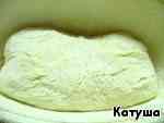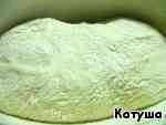 Итак, тесто серьёзно увеличилось - раза в 3-4. Берём глубокую сковороду (лучше толстостенную) или утятницу, смажем маслом и посыпаем мукой.
