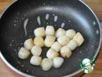 Промокаем гребешок бумажным полотенцем, посыпаем солью, сахаром и обжариваем на сливочном масле до "золотистого"