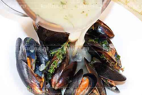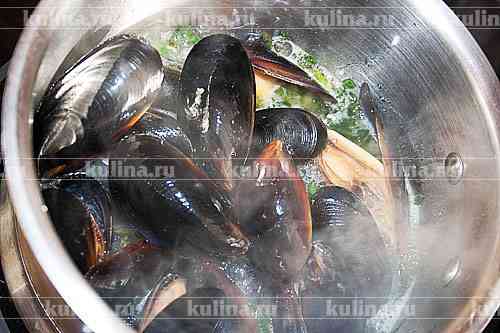 Положить мидии и прогревать 2-3 минуты на сильном огне.