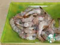 Креветки размораживаем, чистим от панциря, и тщательно отжимаем. Лишняя жидкость нам ни к чему.