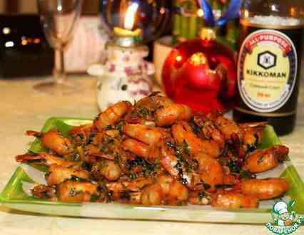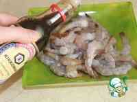 Тут же сбрасываем к нему наши креветочки, поливаем соевым соусом.