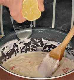 огня, дать остыть до комнатной температуры. Добавить лимонный сок, соль и перец. Перемешать.
