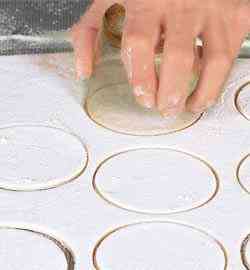 Из оставшихся кружков вырезать стаканом, диаметр которого на 2 см меньше, ободки.