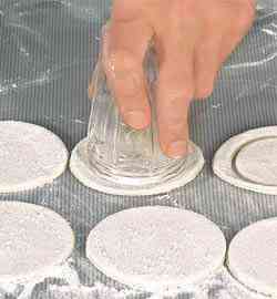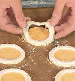 в одном направлении. Стаканом вырезать из теста 18 кружков. 9 кружков оставить как есть.