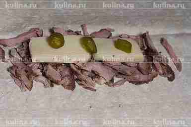 Выложить ломтики маринованного перца.