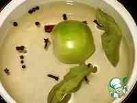 Готовим маринад, в котором будет тушиться окорок. На 1 л воды, половина луковицы, 1 палочка корицы, 10 шт. чёрного перца горошком, лавровый лист, гвоздику.