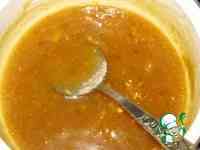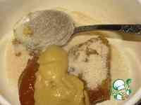 Делаем глазурь для окорока: в сотейнике смешиваем джем, горчицу и сахар.