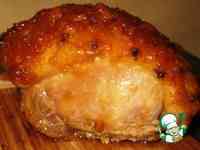 Запекать в духовке при 160° C 40 минут. Периодически вытаскиваем окорок и поливаем верх стекающей вниз глазурью.