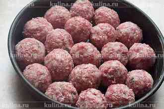 Сформировать ежики (колобки) одинакового размера. Огнеупорную форму смазать небольшим количеством растительного масла, выложить ежики.