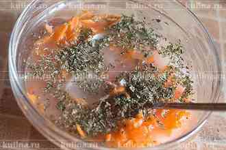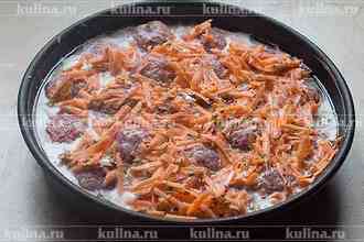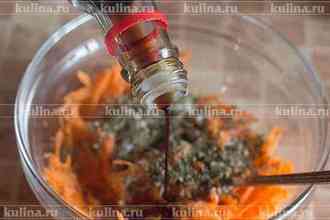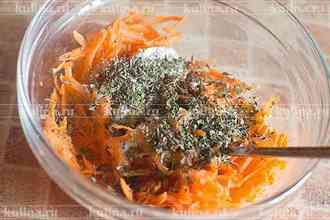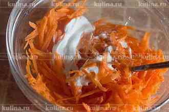 В другую миску вылить сметану. Морковь натереть и положить в миску.