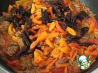 Добавляем к мясу и овощам. Солим по вкусу. Тушим еще 15 минут. Вкуснейшее, ароматнейшее блюдо готово!