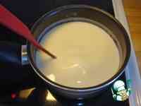 Размешать желтки с небольшим количеством молока и влить в соус, взбивая. Нагревать на среднем огне при постоянном помешивании пару минут (до