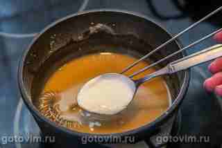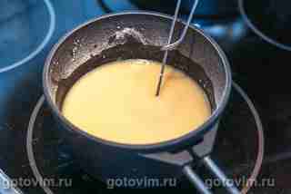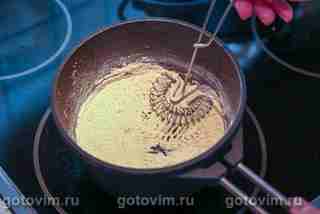 Для соуса обжарить муку на сухой сковороде или в сотейнике до легкого кремового цвета. Чтобы мука не подгорела, постоянно помешивайте её венчиком.