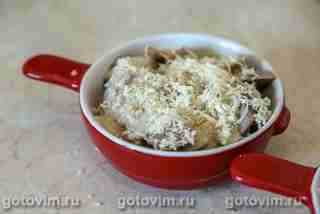 Посыпать тертым сыром и запекать в прогретой до 180° C духовке около 20 минут. За это время соус успеет еще больше загустеть и стать