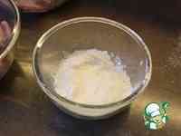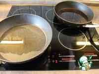 Выложив одну миску на сковороду, выкладываем вторую на другую сковороду. Панировка из муки будет играть в дальнейшем важную роль в приготовлении соуса.