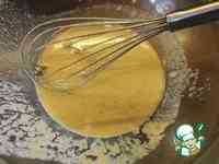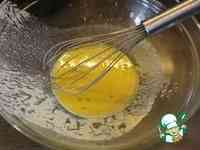 Тонкой струйкой вливаем в желтки небольшое количество горячего соуса тщательно перемешивая. Это нужно для загущения нашего соуса и чтобы желтки не