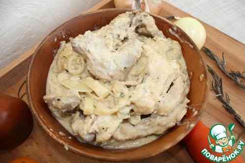 Фрикасе - тушение курицы, кролика, индейки и любого другого мяса в белом соусе (сметане), рагу - в тёмном, коричневом... Итак, начинаем колдовать над нашими
